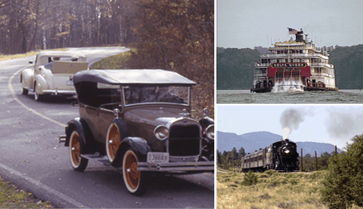 Passenger trains, steamboats, classic cars and Burma-Shave signs help bring back memories through the Americana Series by Sentimental Productions.