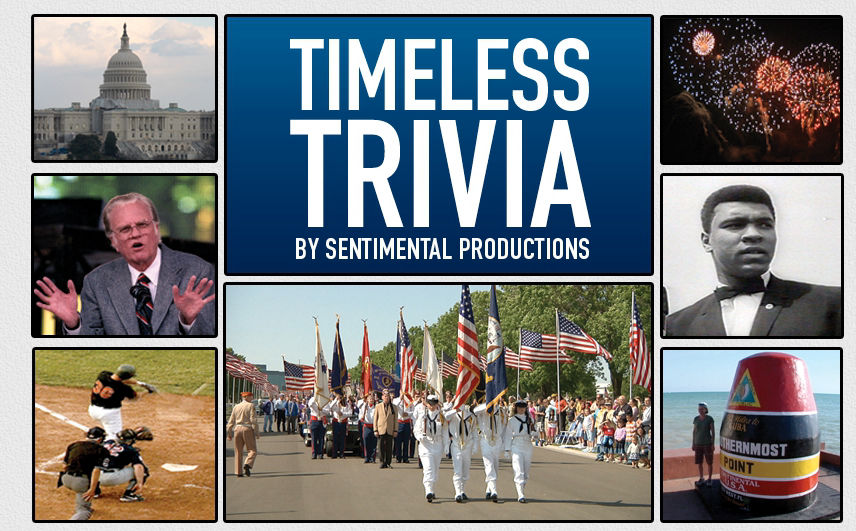 Through the film clips, historic photos and commentary, Sentimental Productions presents to viewers the times, places and events that they very likely remember. But no one is expected to recall every fact we use to bring interesting subjects to our viewers. Our idea is not to test your knowledge, but to stretch your memory and to have a little fun. There are a total of 18 Episodes in this series, each episode is approximately 35 minutes long and has 50 questions and answers.